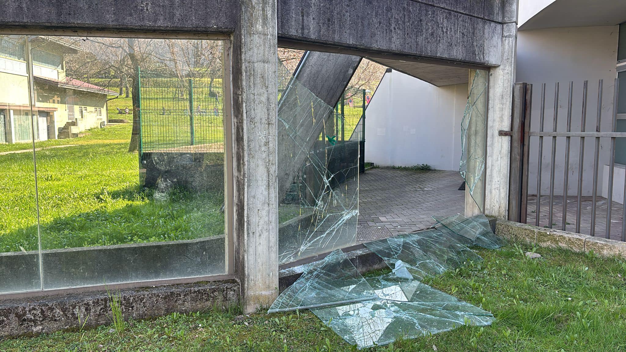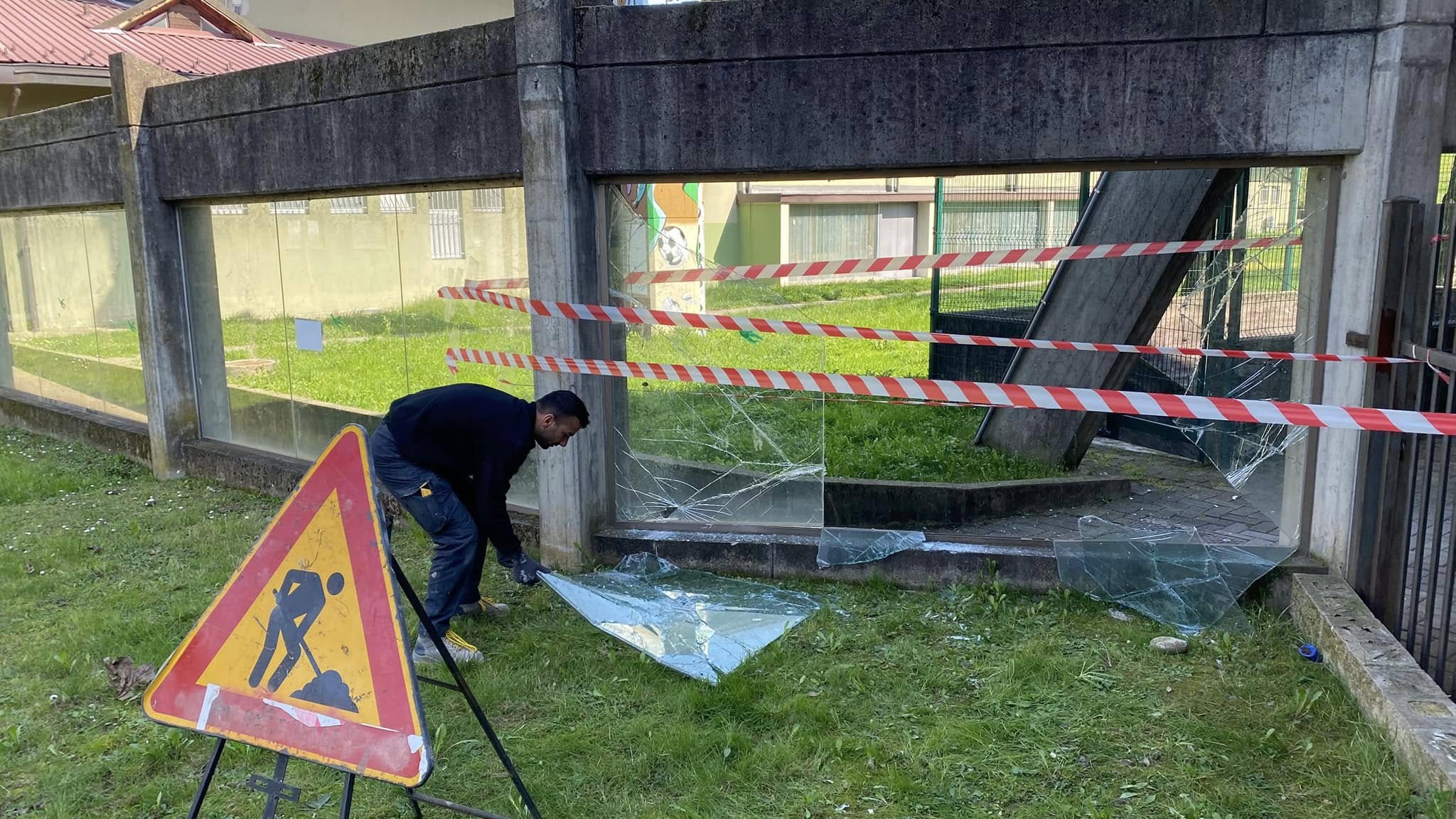 Nella notte fra venerdì e sabato, sicuramente dopo mezzanotte, alcune persone non meglio identificate hanno vandalizzato le vetrate del passaggio pedonale che collega la Scuola secondaria di primo grado all’Auditorium “A.M. Mozzoni”.